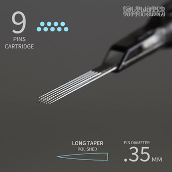 Our Curved Magnum Shaders are soldered the same distance as our standard mags but with just the right curve at the ends of the needle to allow a comfortable shading experience. They are made with long taper pins.